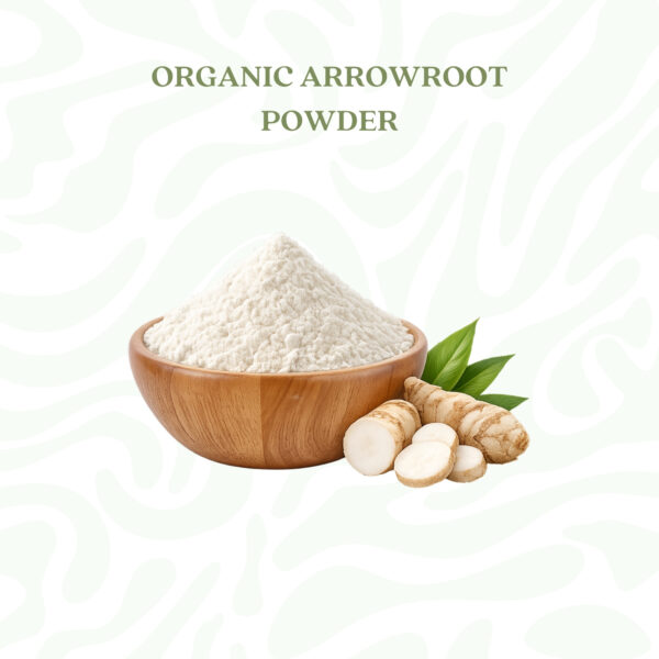 Organic Arrowroot Powder is a pure, natural starch extracted from the rhizomes of Maranta arundinacea. Thisfine, white powder is highly valued as a gluten-free thickening agent, digestive aid, and clean-label ingredient.Perfect for food manufacturing, bakery applications, baby foods, and clean-label formulations requiring naturalbinding and thickening properties.